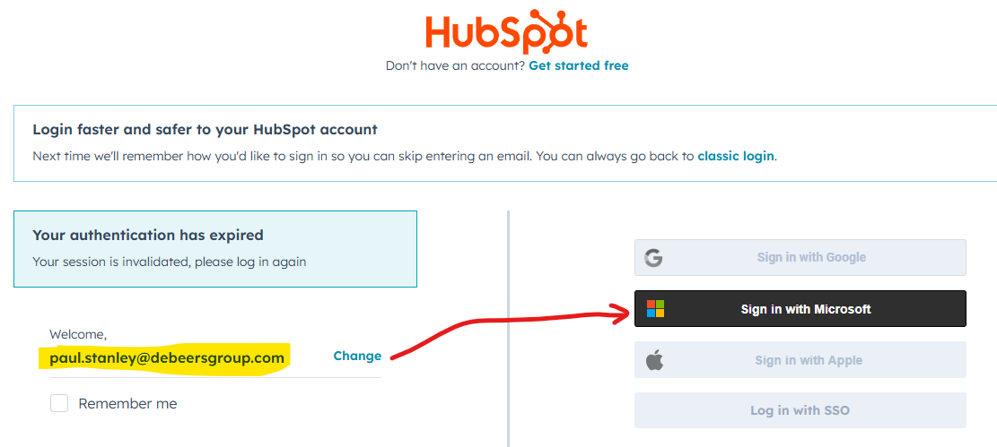 Logging on to Hubspot How to logon to HubSpot Logon with your work email address and select the "Sign in with Microsoft" option to logon via SSO using your usual work logon.